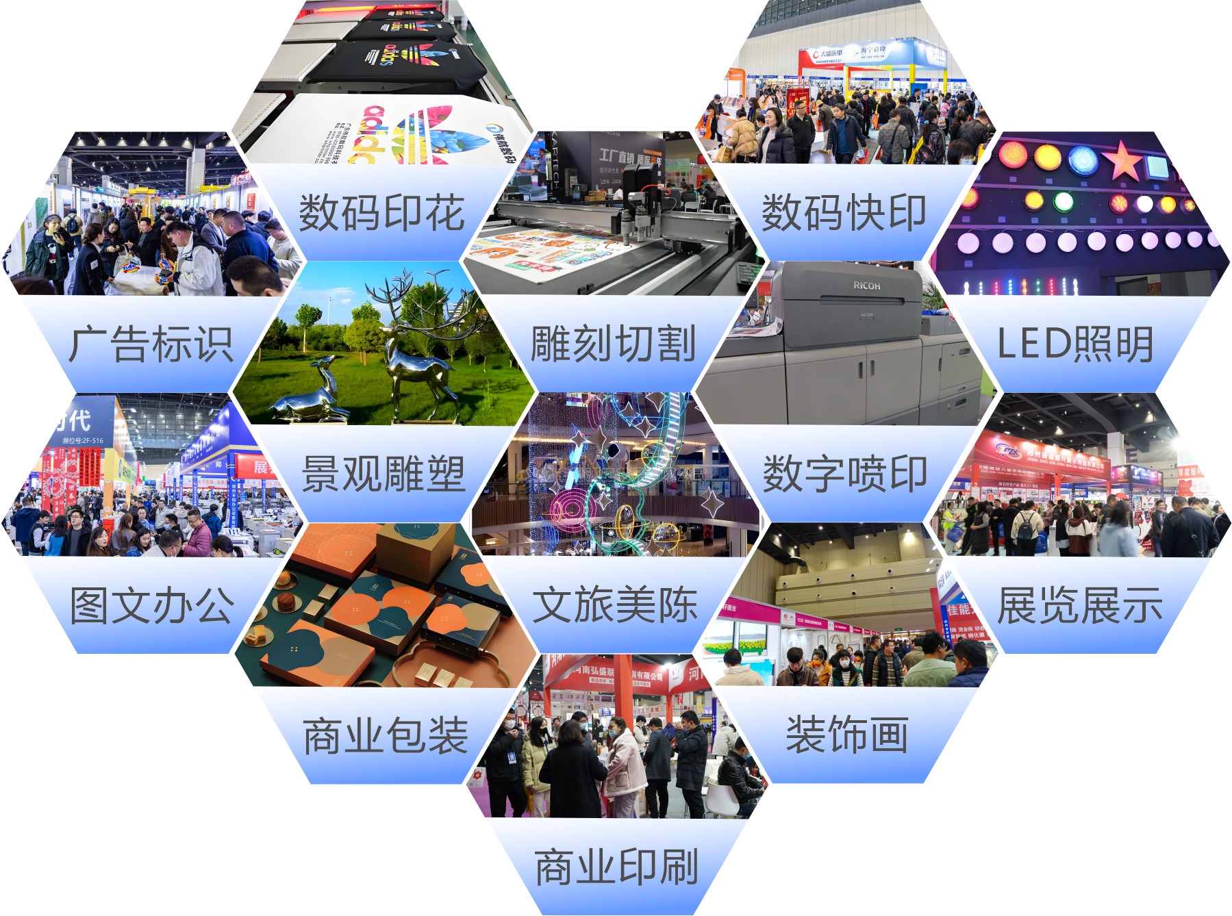 展會(huì)展品范圍涵蓋了廣告標(biāo)識(shí)、LED照明、噴印、印花、雕刻切割、圖文辦公、商業(yè)印刷與包裝、數(shù)碼快印、影像、裝飾畫與框業(yè),為眾多品牌進(jìn)入河南及中北部市場(chǎng)提供了機(jī)遇,更為河南及中北部市場(chǎng)帶來了全球采購(gòu)的絕佳平臺(tái)。